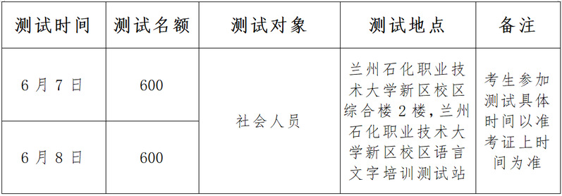 2025年5月1日8:00—5月18日18:00,过时不予补报。(测试地点:兰州石化职业技术大学新区校区综合楼2楼)。