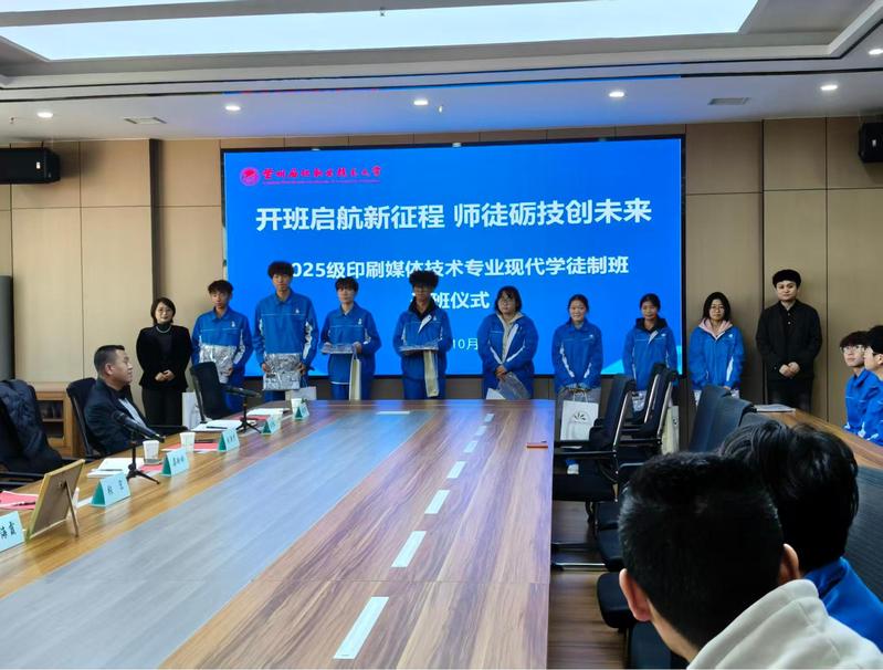 随后,梁玲玲在致辞中向在场师生介绍了企业的发展概况及印刷行业的前沿动态。她表示,印刷行业正朝着智能化、绿色化方向转型,对高素质技术技能人才的需求日益迫切。学校印刷媒体技术专业在行业内拥有良好的口碑,培养的毕业生专业基础扎实、实操能力突出,不少已成为企业发展的中坚力量。此次与学校共建现代学徒制班,是企业践行社会责任、储备核心人才的重要战略举措。开班仪式上,企业代表为现代学徒制班学生发放了企业工装和学习礼包。
